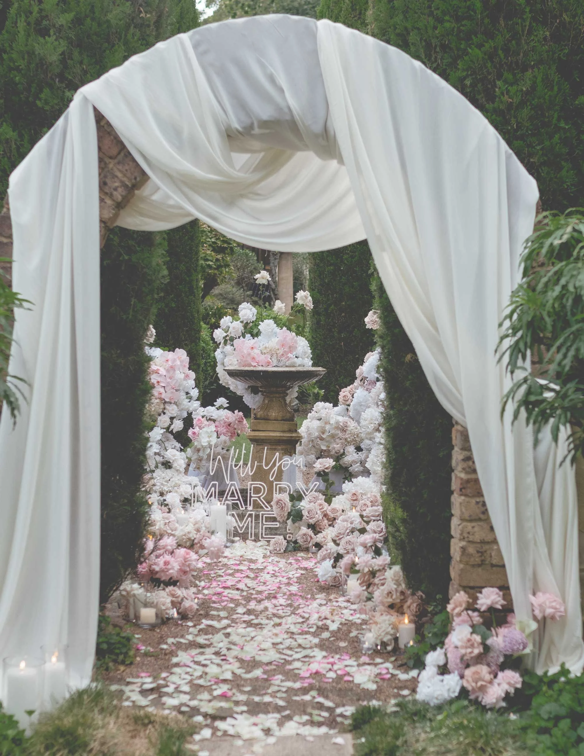 Full service wedding flowers — our complete wedding florist service, including custom designs, ceremony arches, reception styling, delivery, setup, and pack-down.